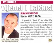 Poznati televizijski kritičar "Nacionala", Ivan Starčević, pohvalio je reportažu s Riječkog karnevala iz naše radionice.